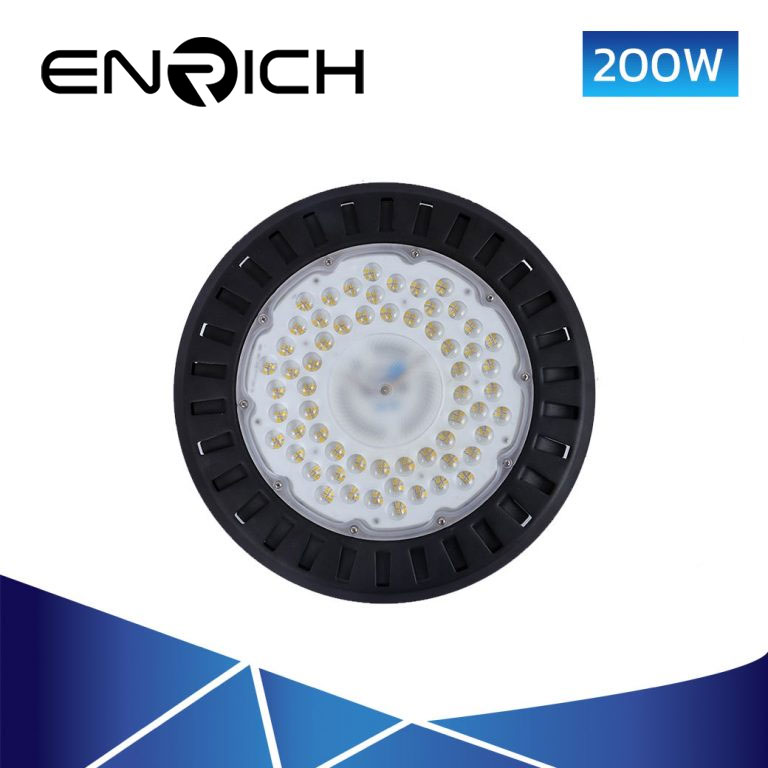 โคมไฮเบย์ LED 200W ENRICH UFO AIR SERIES เหมาะสำหรับติดตั้งในพื้นที่ที่ต้องการความสว่างสูง เช่น โรงงาน โกดังสินค้า ท่ารถขนส่งสินค้า สนามกีฬาในร่ม เป็นต้น ตัวโคมไฮเบย์ทำจากอลูมิเนียมจึงมีความแข็งแรง สามารถระบายความร้อนได้ดี ในส่วนของชิป LED นั้นใช้ EPISTAR Chip สว่างกว่าชิปแบบธรรมดาทั่วไป โดยให้ค่าความสว่างที่ 90lm/w นอกจากนี้ยังมีระบบป้องกันไฟกระชาก 2kV สามารถกันน้ำและฝุ่นระดับ IP65 ได้รับ มอก.1955-2551 และมีการรับประกันยาวนาน 2 ปีเต็ม