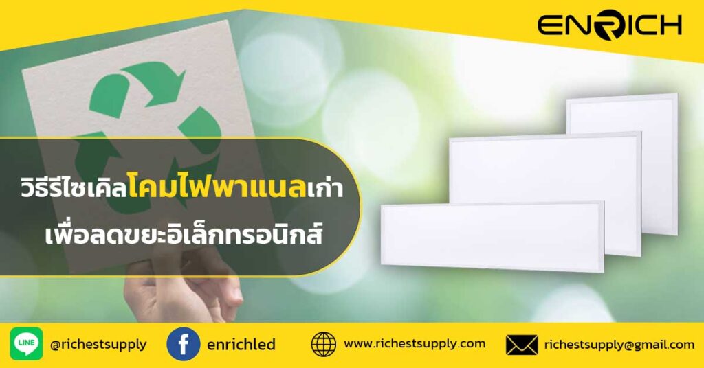 วิธีรีไซเคิลโคมไฟพาแนลเก่าเพื่อลดขยะอิเล็กทรอนิกส์ ในยุคที่ขยะอิเล็กทรอนิกส์ (E-Waste) เพิ่มขึ้นอย่างรวดเร็ว การรีไซเคิลและนำกลับมาใช้ใหม่เป็นแนวทางสำคัญในการลดผลกระทบต่อสิ่งแวดล้อม โคมไฟพาแนลเป็นหนึ่งในอุปกรณ์แสงสว่างที่ได้รับความนิยมมาก แต่เมื่อหมดอายุการใช้งาน หลายคนอาจไม่ทราบวิธีการกำจัดอย่างถูกต้อง บทความนี้จะอธิบายถึง วิธีรีไซเคิลโคมไฟพาแนลเก่า อย่างถูกต้อง เพื่อลดขยะอิเล็กทรอนิกส์และช่วยรักษาสิ่งแวดล้อม 1. โคมไฟพาแนลประกอบด้วยอะไรบ้าง? ก่อนที่จะรีไซเคิล ควรเข้าใจโครงสร้างของโคมไฟพาแนล ซึ่งประกอบด้วย: แผง LED: แหล่งกำเนิดแสงที่ใช้พลังงานต่ำและมีอายุการใช้งานยาวนาน กรอบอะลูมิเนียมหรือพลาสติก: ใช้เป็นโครงสร้างของโคมไฟ ไดรเวอร์ไฟฟ้า (LED Driver): ควบคุมแรงดันไฟฟ้าให้เหมาะสมกับหลอดไฟ LED แผ่นกระจายแสง (Diffuser Panel): ช่วยให้แสงกระจายอย่างสม่ำเสมอ สายไฟและตัวเชื่อมต่อ: ใช้สำหรับจ่ายพลังงานไฟฟ้า เนื่องจากวัสดุเหล่านี้มีคุณค่าและสามารถนำกลับมาใช้ใหม่ได้ การรีไซเคิลจึงเป็นทางเลือกที่ช่วยลดขยะและส่งเสริมการใช้ทรัพยากรอย่างคุ้มค่า 2. ทำไมต้องรีไซเคิลโคมไฟพาแนล? 2.1 ลดขยะอิเล็กทรอนิกส์ ปัจจุบันขยะอิเล็กทรอนิกส์เป็นปัญหาใหญ่ที่ส่งผลกระทบต่อสิ่งแวดล้อม การรีไซเคิลช่วยลดปริมาณขยะที่ต้องนำไปฝังกลบและลดการปล่อยสารพิษออกสู่ธรรมชาติ 2.2 ประหยัดทรัพยากร วัสดุอย่างอะลูมิเนียม พลาสติก และชิ้นส่วนอิเล็กทรอนิกส์สามารถนำกลับมาใช้ใหม่ ช่วยลดความต้องการในการขุดแร่และผลิตวัสดุใหม่ 2.3 ลดการปล่อยคาร์บอน การผลิตวัสดุใหม่ต้องใช้พลังงานสูง การรีไซเคิลช่วยลดการใช้พลังงานและลดการปล่อยก๊าซเรือนกระจก 3. วิธีการรีไซเคิลโคมไฟพาแนลเก่า 3.1 การถอดแยกชิ้นส่วน […]