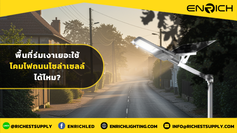 พื้นที่ร่มเงาเยอะ ใช้โคมไฟถนนโซล่าเซลล์ได้ไหม? หลายคนคงสงสัยว่าถ้าพื้นที่ติดตั้งมีร่มเงาเยอะ โคมไฟถนนโซล่าเซลล์จะยังทำงานได้เต็มประสิทธิภาพหรือไม่? บทความนี้จะมาไขข้อข้องใจโคมไฟถนนโซล่าเซลล์พื้นที่ร่มเงาเยอะใช้ได้ไหมพร้อมแนะนำแนวทางปฏิบัติให้คุณสามารถใช้พลังงานแสงอาทิตย์ได้อย่างคุ้มค่าที่สุด แม้ในพื้นที่ที่มีร่มเงา หลักการทำงานของโคมไฟถนนโซล่าเซลล์ โคมไฟถนนโซล่าเซลล์ (Solar Street Light) ทำงานโดยการเก็บพลังงานแสงอาทิตย์ผ่านแผงโซล่าเซลล์ในตอนกลางวัน แล้วเปลี่ยนเป็นพลังงานไฟฟ้าเก็บไว้ในแบตเตอรี่ เพื่อจ่ายไฟให้กับหลอด LED ในช่วงเวลากลางคืน ❗ ดังนั้น “แสงอาทิตย์” จึงเป็นแหล่งพลังงานหลัก หากแสงไม่เพียงพอ ระบบจะผลิตไฟฟ้าได้น้อย ส่งผลให้ความสว่างลดลง หรือใช้งานได้ไม่ครบคืน ร่มเงาส่งผลต่อโคมไฟโซล่าเซลล์อย่างไร? ร่มเงา เป็นปัจจัยสำคัญที่ส่งผลกระทบโดยตรงต่อประสิทธิภาพการทำงานของโคมไฟถนนโซล่าเซลล์ เนื่องจาก: ลดทอนการรับแสง: เมื่อแผงโซล่าเซลล์ถูกบดบังด้วยร่มเงา ไม่ว่าจะเป็นจากต้นไม้ อาคาร หรือสิ่งกีดขวางอื่นๆ จะทำให้แผงโซล่าเซลล์ได้รับแสงแดดไม่เต็มที่ ส่งผลให้ผลิตกระแสไฟฟ้าได้น้อยลง การชาร์จแบตเตอรี่ไม่เต็มที่: เมื่อกระแสไฟฟ้าที่ผลิตได้ลดลง แบตเตอรี่ก็จะไม่ได้รับการชาร์จอย่างเต็มที่ ทำให้พลังงานที่สะสมไว้ไม่เพียงพอต่อการใช้งานตลอดคืน อายุการใช้งานสั้นลง: การที่แบตเตอรี่คายประจุจนหมดบ่อยๆ หรือได้รับการชาร์จไม่เต็มที่อย่างต่อเนื่อง อาจส่งผลให้อายุการใช้งานของแบตเตอรี่สั้นลง แล้วพื้นที่ร่มเงาเยอะ ใช้โคมไฟถนนโซล่าเซลล์ได้ไหม? คำตอบคือ ได้ แต่มีข้อควรพิจารณาและแนวทางแก้ไข แม้ว่าพื้นที่ที่มีร่มเงาจะลดประสิทธิภาพของโคมไฟโซล่าเซลล์ลง แต่ก็ไม่ได้หมายความว่าจะไม่สามารถใช้งานได้เลย คุณยังสามารถติดตั้งโคมไฟถนนโซล่าเซลล์ได้ เพียงแต่ต้องพิจารณาปัจจัยเหล่านี้และหาวิธีแก้ไขที่เหมาะสม แนวทางแก้ไขและเทคนิคการเลือกโคมไฟโซล่าเซลล์ในพื้นที่ร่มเงา เพื่อเพิ่มประสิทธิภาพการทำงานของโคมไฟโซล่าเซลล์ในพื้นที่ที่มีร่มเงา ควรพิจารณาแนวทางเหล่านี้: […]